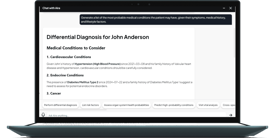 Vitals, past visits, comorbidities, allergies, AI gives you a clean summary before the patient even enters.